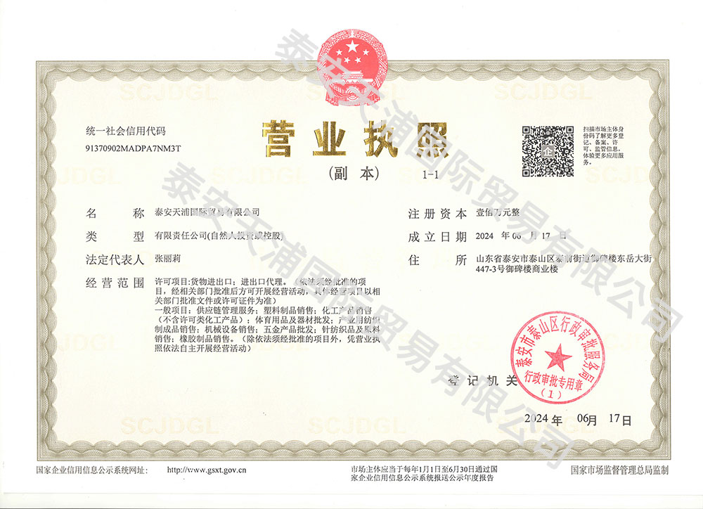 Taian Tianpu International Trade Co., LTD., the main business scope for wholesale and retail trade, goods import and export and import and export agency services, import and export qualifications are complete, has a certain scale and strength.